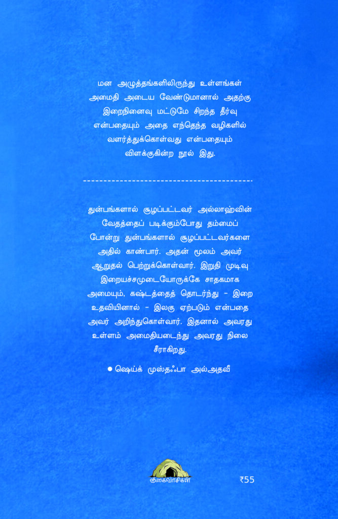 மன அழுத்தங்களிலிருந்து உள்ளங்கள் அமைதி அடைய வேண்டுமானால் அதற்கு இறைநினைவு மட்டுமே சிறந்த தீர்வு என்பதையும் அதை எந்தெந்த வழிகளில் வளர்த்துக்கொள்வது என்பதையும் விளக்குகின்ற நூல் இது.