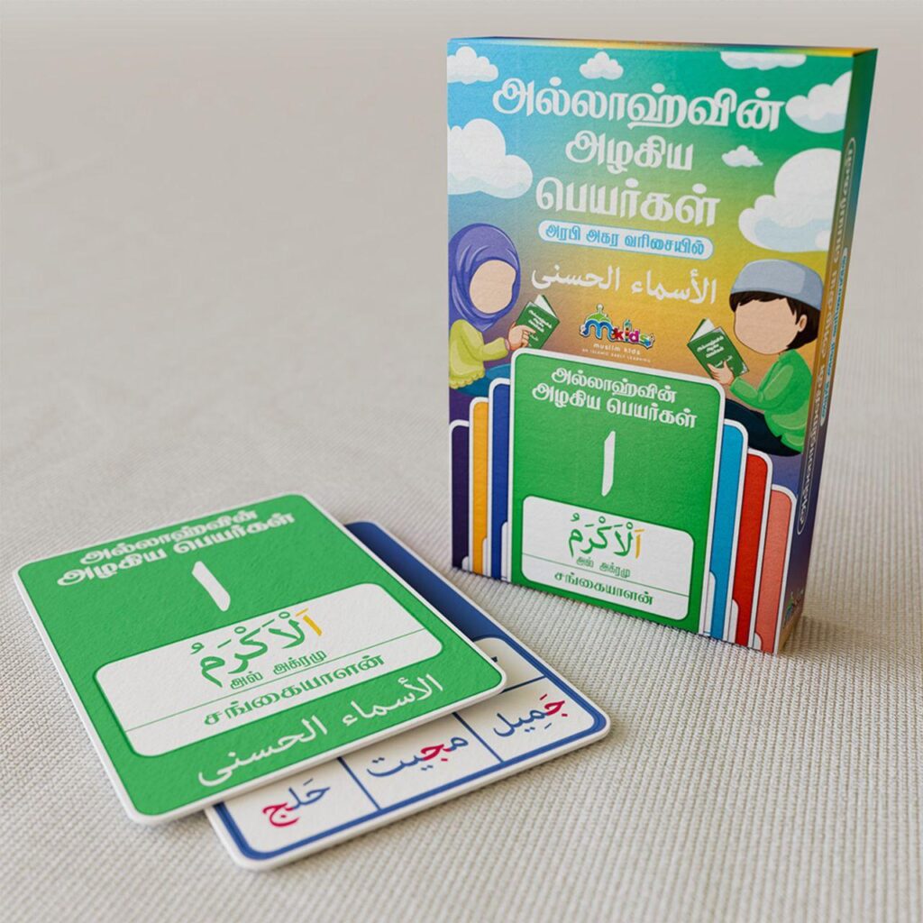 📚 *அல்லாஹ்வின் அழகிய பெயர்கள்* – அரபி அகர வரிசையில். *الأسماء الحسنى* நமது குழந்தைகளுக்கு அல்லாஹ்வின் திருப்பெயர்களை எளிய முறையில் கற்றுக்கொள்ள…. 💡*இப்போது முன்பதிவு செய்யுங்கள்*‼️ ✨ *அட்டைகளின் சிறப்பம்சங்கள்:* – அல்லாஹ்வின் திருப்பெயர்கள் அரபி அகர வரிசையில் – ஒவ்வொரு பெயரின் அரபி சொற்கள் – பெயர்களின் தமிழ் மொழிபெயர்ப்பு – தமிழ் Transliteration உடன் எளிதான உச்சரிப்பு முறை 🌟 *அல்லாஹ்வின் திருப்பெயர்களை கற்பதன் மகத்துவம்:* […]