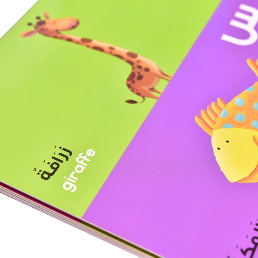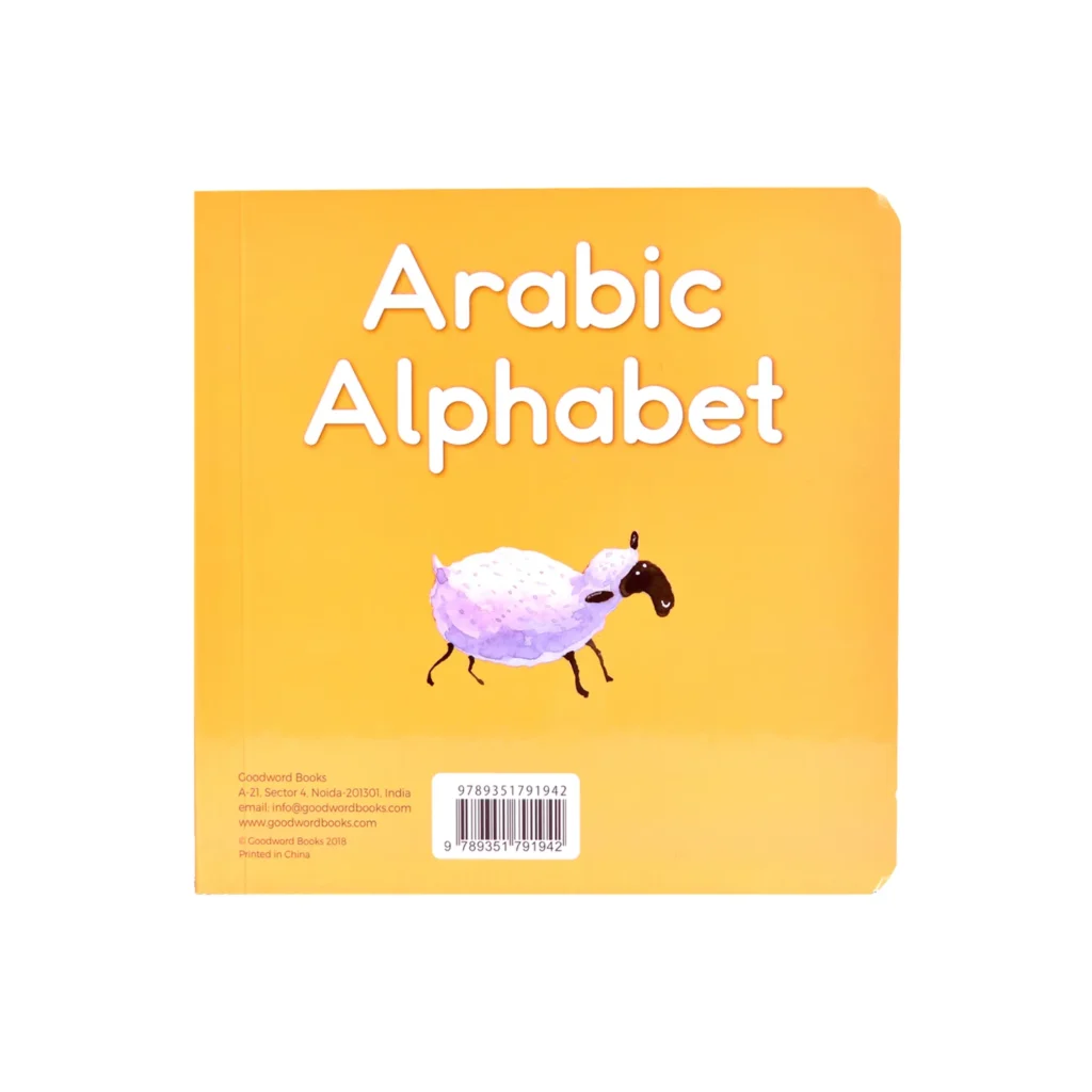 A colorful board book for learning Arabic alphabets. This Arabic alphabet board book is aimed to make learning easy for the first-time learner by providing each Arabic alphabet with a picture of associated object, pronunciation and bilingual word. This Arabic alphabet board book offers a great way to introduce books to kids and also encourages them to read.