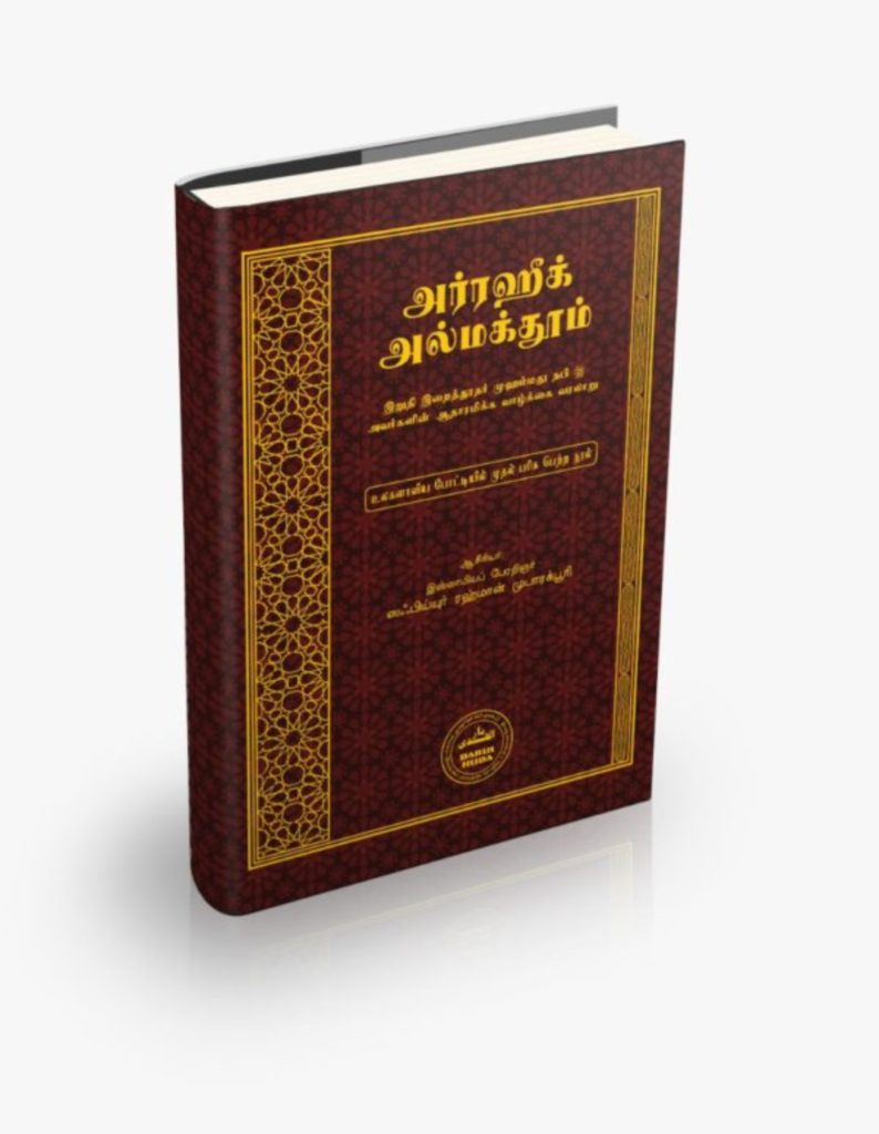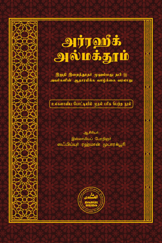ArRaheeq Al-Makhtum (The Sealed Nectar) in Tamil. A complete authoritative book on the life of Prophet Muhammad H by Sheikh Safi-ur-Rahman al-Mubarkpuri,And tamil translate by Mufti Omer Shariff It was honored by the World Muslim League as first prize winner book. Whoever wants to know the whole life style of the Prophet in detail must read this book.