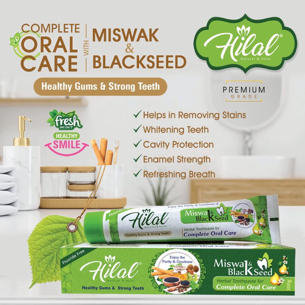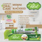Blends ancient wisdom with modern science for comprehensive oral hygiene. Aims to keep teeth and gums strong, healthy, and protected against dental issues. Addresses tooth decay, removes stains, and offers a holistic approach to oral well-being. Leverages Miswak and Blackseed for their potent therapeutic properties.