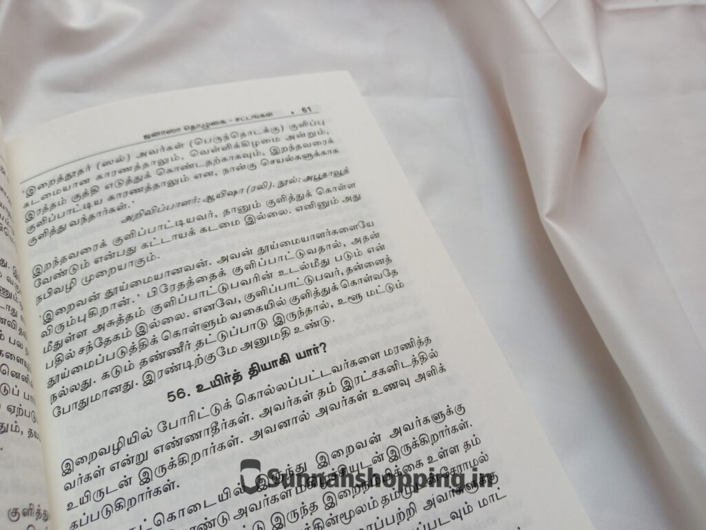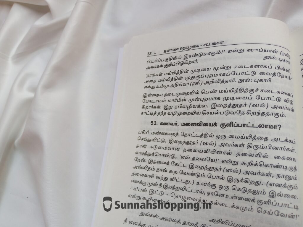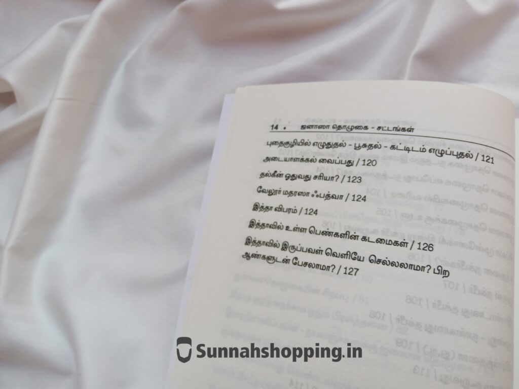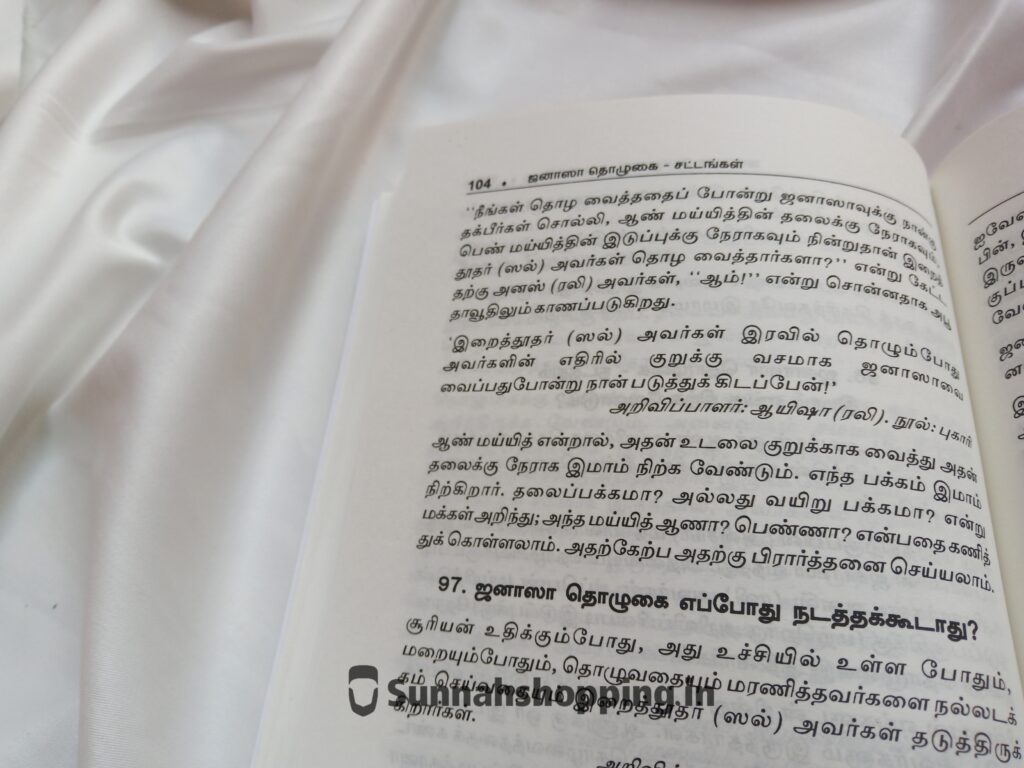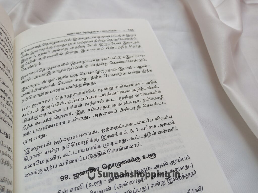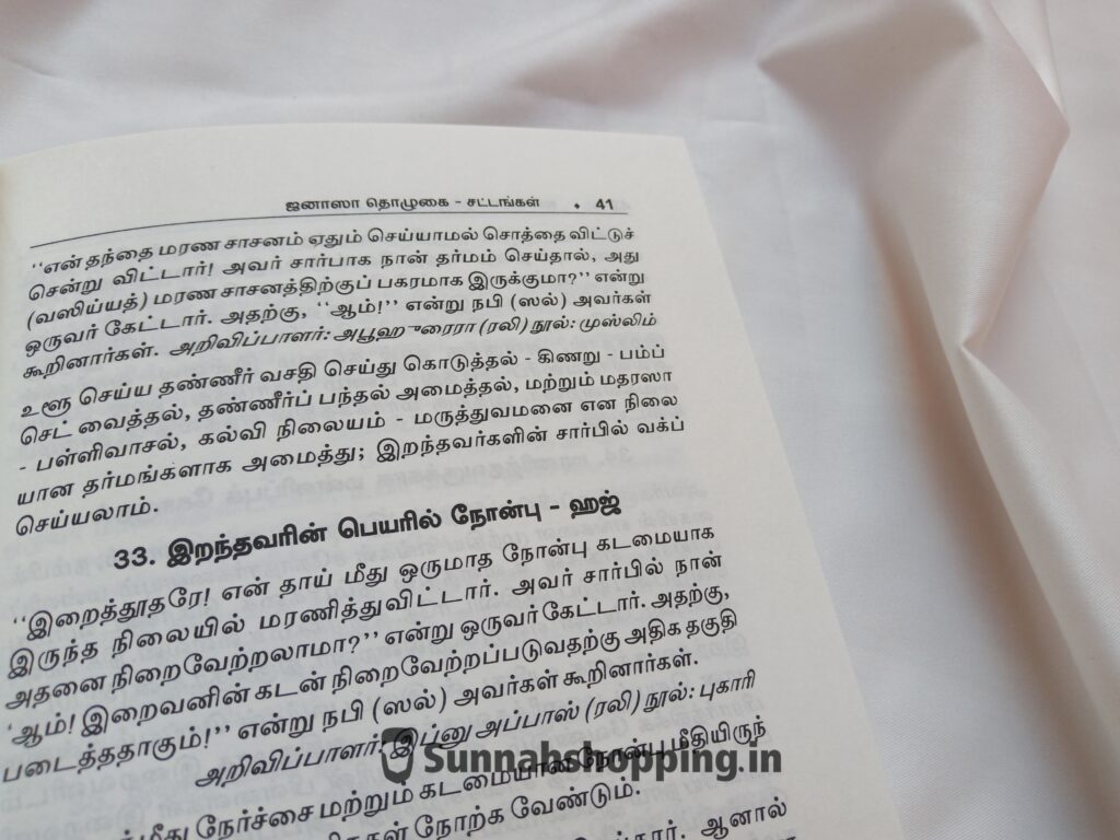 ஜனாஸா -வின் தொழுகையும், வியாதியில் வீழ்ந்ததுமுதல் மரணத்தில் வீழும்வரை மரணித்தவருக்கு கபன் ஆடை கிழிப்பது முதல், அடக்கம் செய்யப்படும்வரை கூடும் செயல்கள், கூடாத செயல்கள் யாவும் இந்நூலில் அடக்கம்.