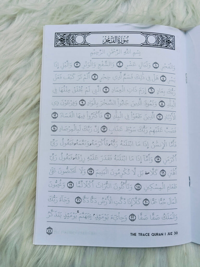 This is a Quran which you can trace over, providing a special experience of writing Juz ‘Amma with your own hands.