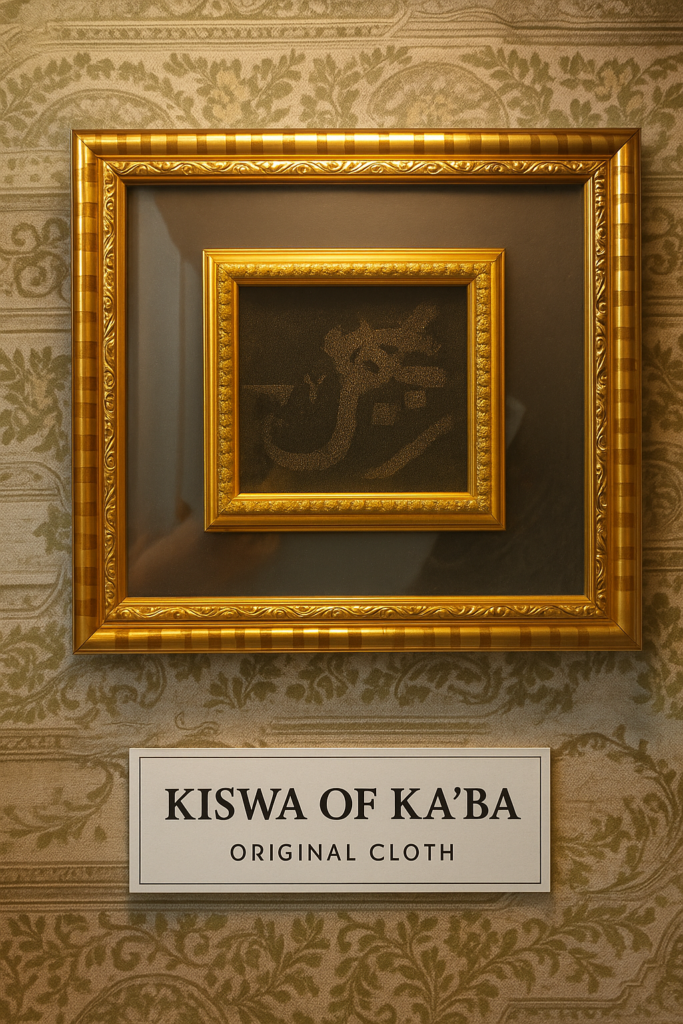 Adorn your home or workspace with a piece of history β a beautifully framed original cloth from the Kiswa of the Ka’ba, the sacred covering of the Holy Ka’ba in Makkah.
