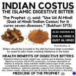It is upon you to use ‘Al ‘Uood al Hindee’ [i.e. Qist/Costus], for indeed it contains seven cures; it is inhaled through the nostrils to relive throat aches/tonsillitis and placed in the sides of the mouth for the relief of Dhaat al Janb