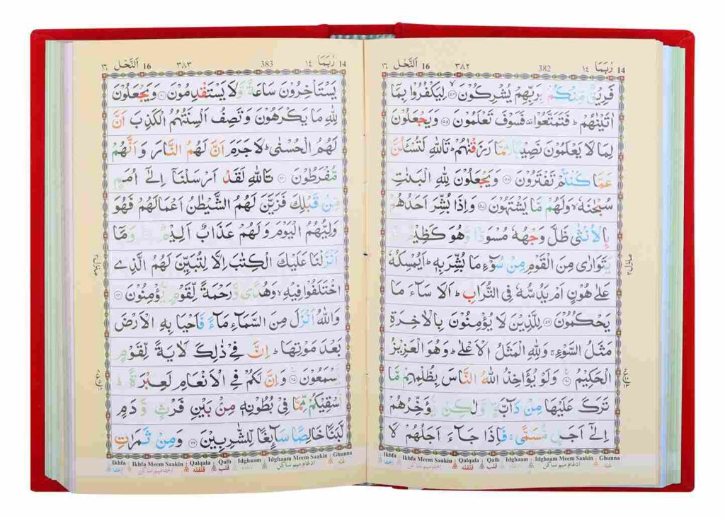 Quran 30 Para Set | 9 LInes • Hardbound • Indo-Pak Script • Rainbow themed colourful pages • 13 lines on each page • Colour coded Tajweed rules • Velvet engraved cover with 3D brass plate This unique cover Quran includes touches of pastel colours specially made to attract the young population towards the glorious […]