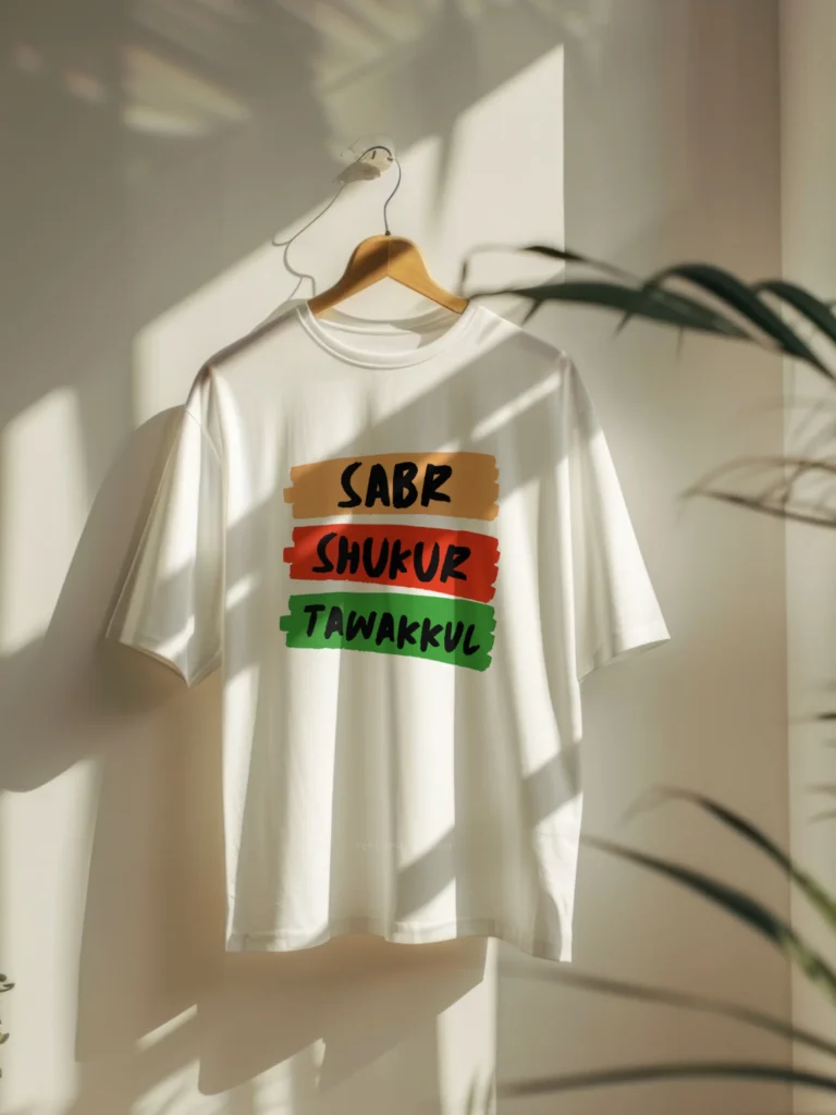 Be the first to review “Sabr Shukur Tawakkul Round Neck Oversized Half Sleeve T-Shirts”