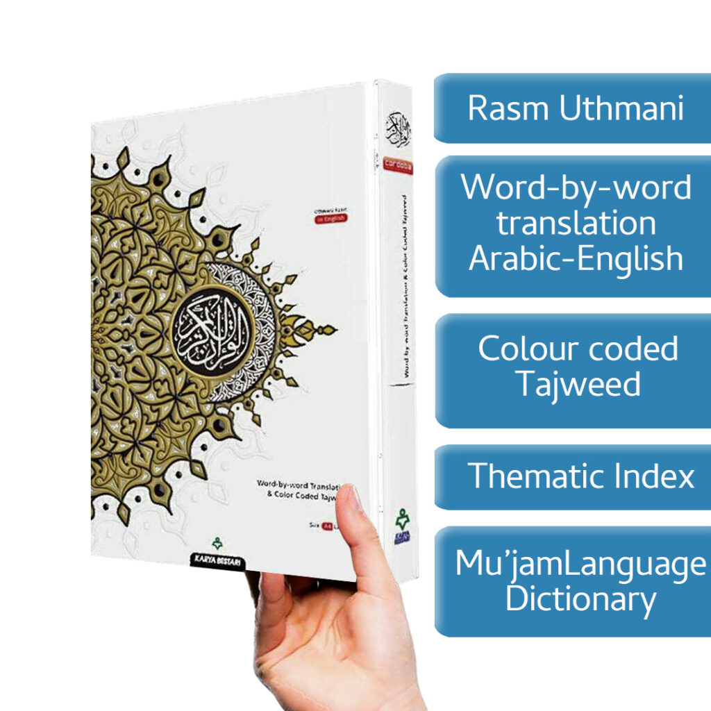 [SMALL] NOBLE Maqdis A5 Small Size Quran Word For Word Colour Coded Tajweed Arabic-English Translation